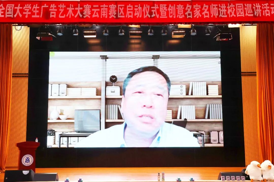 本次活动由全国大学生广告艺术大赛组委会组织,大广赛云南赛区组委会主办,昆明理工大学艺术与传媒学院承办,云南工商学院协办。昆明理工大学副校长周峰越、云南省高等教育新闻传播学教学指导委员会副主任王勇、云南工商学院副校长马晓红、云南工商学院人文艺术学院副院长林海等出席活动并讲话。因疫情原因,国家广告研究院副院长、中国传媒大学广告学教授张翔,平安银行、100年润发、纳爱斯等品牌嘉宾在线上为与会同学进行了精彩的讲座分享和思维碰撞。