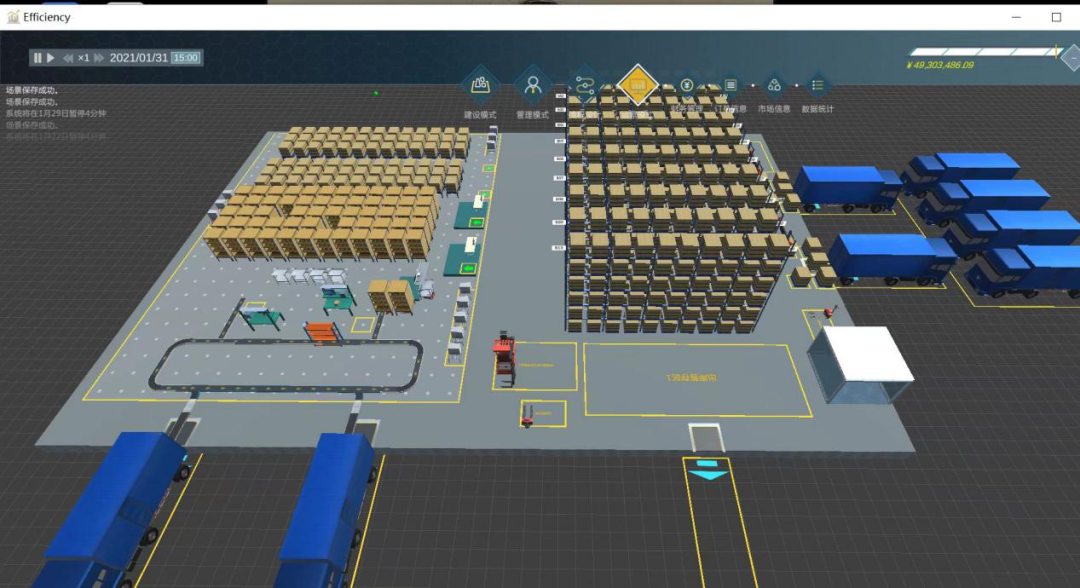 邢雪杉表示,本次的方案设计,首先是根据ITP虚拟仿真系统进行基础数据的调研,在物流企业构建时充分考虑目标市场的竞争情况,定性方法中运用博弈论思维,定量方法中选用SLP法对物流中心区域布置进行规划,同时采用EIQ法和PCB法对物流中心进行动线设计。然后运用图例清晰的标出物流中心各区域和不同货物的移动路线,从而使得物流中心能在疫情的背景下更高效地运作,保障人民的生活物资供应和企业的生产安全。