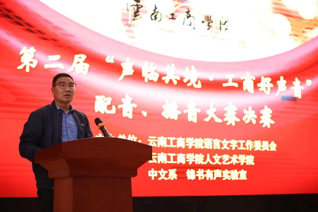 “我校始终对于推广应用普通话给予高度重视,未来我校语言文字工作将在云南工商学院语言文字工作委员会的领导下,持续加强语言文字和中华经典的研究阐释、教育传承及创新传播,更好地发挥我校立德树人的办学功能!预祝第二届“声临其境·工商好声音”配音、播音大赛决赛成功举办!”