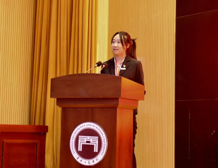 2022级小学教育专业学生高舒作为新学员代表发言。她衷心感谢学校党委、团委和老师们为青年成长搭建宝贵平台,并分享了自身对“青马工程”的深刻认识。她表示,“青马”不仅是一份荣誉,更是一份责任,是青年学子淬炼思想、提升能力、坚定信仰的重要契机。她代表全体学员郑重承诺,将努力成为“信仰坚定的追光者、本领过硬的实干家、勇于担当的奋斗者”,自觉践行习近平总书记对广大青年的殷切期望,以饱满热情投入学习,以实干精神践行使命,在理论滋养与实践锻炼中成长为有理想、敢担当、能吃苦、肯奋斗的新时代青年骨干。